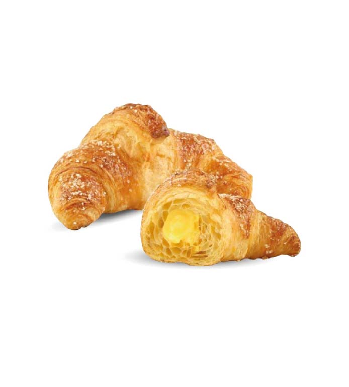 Il cornetto vuoto “Ischia” é un cornetto a doppio impasto e composto da morbidissima pasta brioche ricoperta da fragrante pasta sfoglia. Preparato con lievito madre e una lievitazione di 26 ore. La sua forma più panciuta lo rende ideale da farcire con le più svariate creme, lucidare e guarnire. Prodotto ideale per la pasticceria.