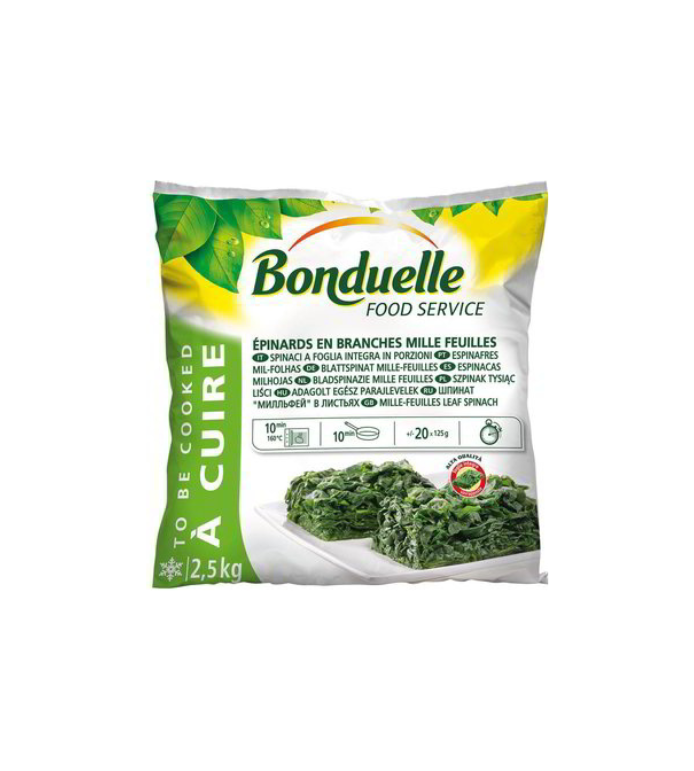 Grazie alle pratiche porzioni da 80gr, gli spinaci in foglia surgelati “Bonduelle” sono pratici e veloci. Scoprirai un sapore intenso e una consistenza tenera, con delle foglie uniformi e dal colore vivace, con una qualità sempre al top.